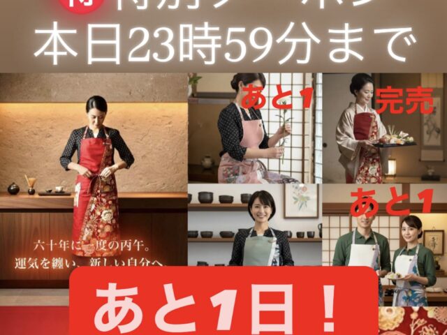 ▶ ⏰残り4日✨同時開催!在庫応援市クーポン配布 【六十年に一度の丙午】2026年開運エプロン 限定各2枚のみ、先行販売受付中 & 展示会出店に向けたパートナー様ご支援募集中