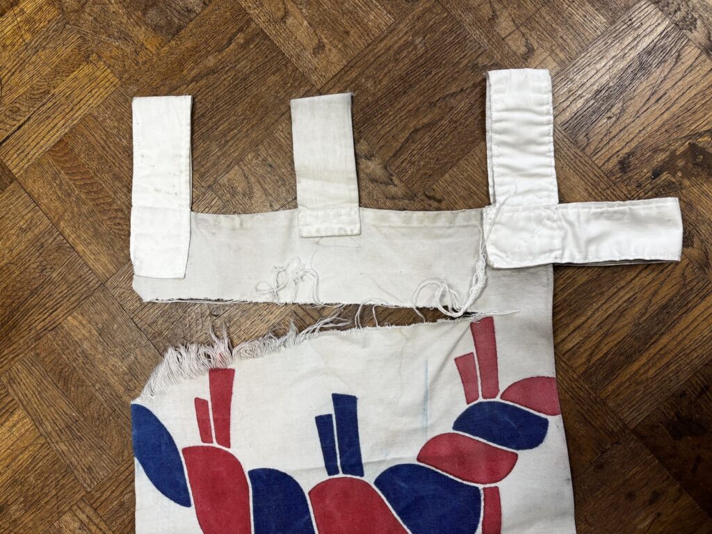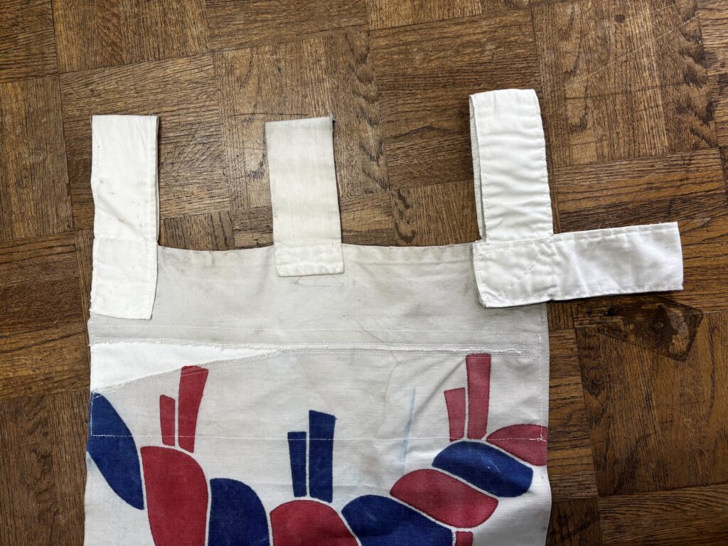 大幟(大のぼり)上部が破れてしまったとのことで、当て布修理をしました。