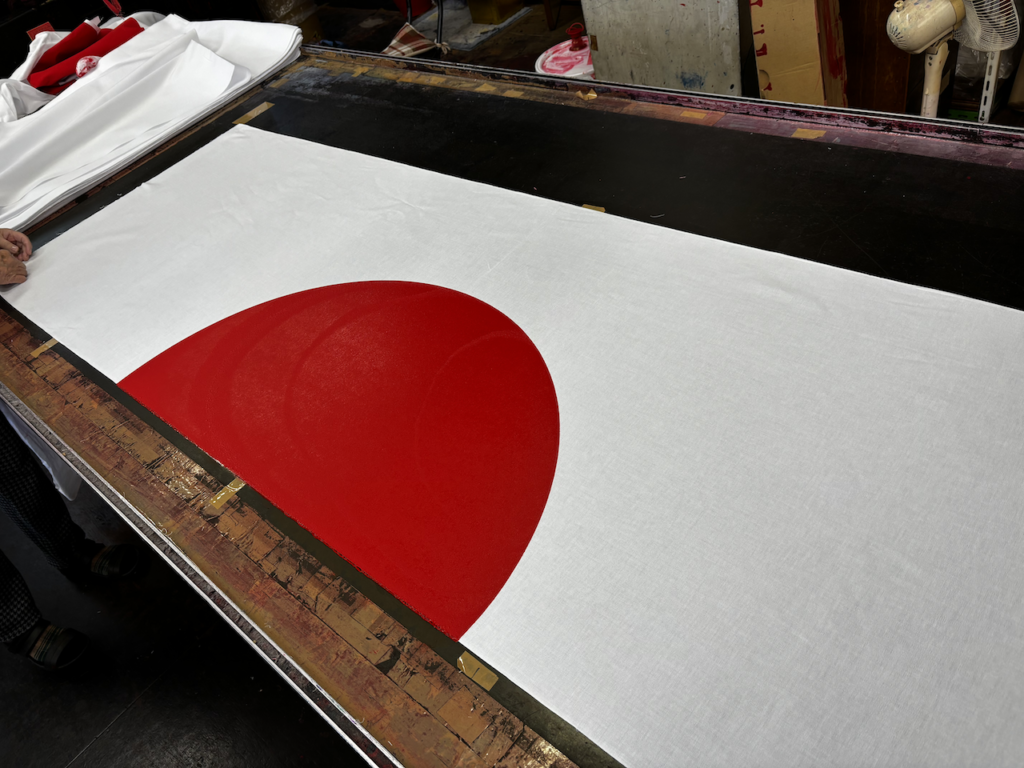 オリジナル国旗(日章旗/日の丸旗)を染めている画像[/caption]