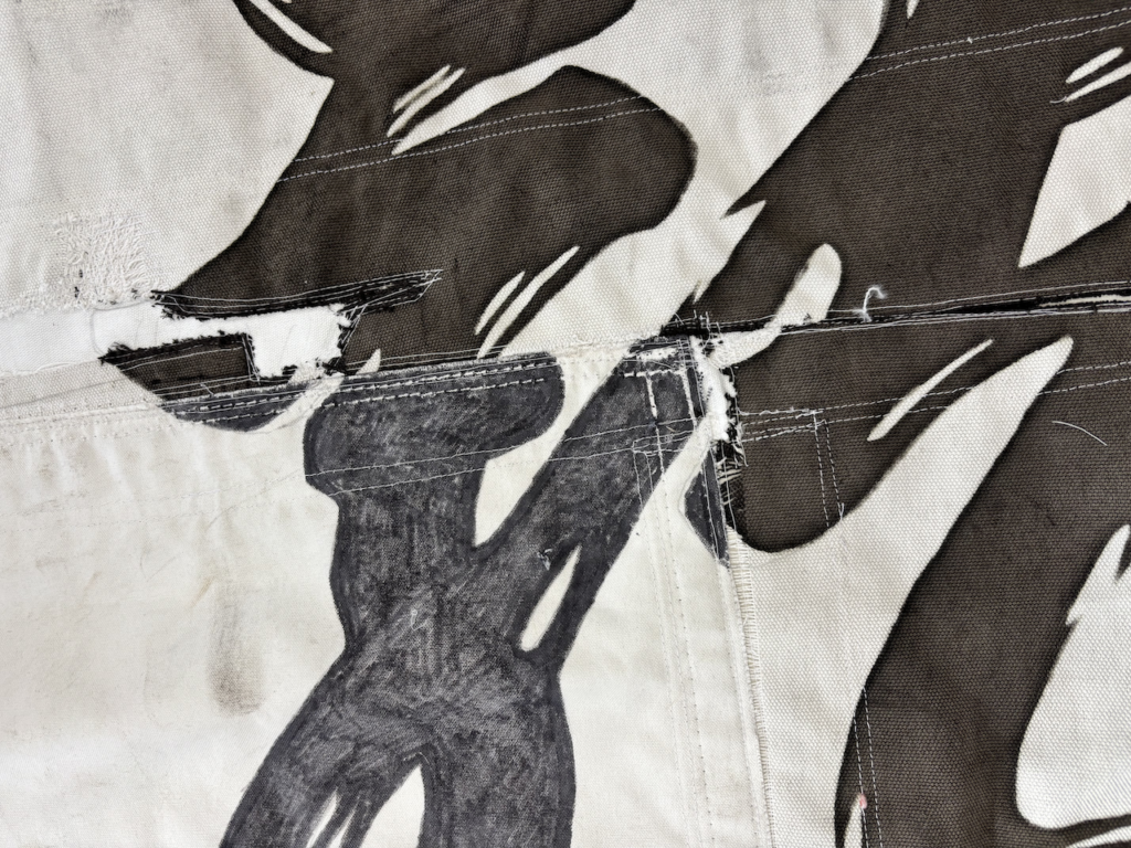 破れ修理と当て布箇所の染め、穴あき箇所と小さな破れの修理でした。