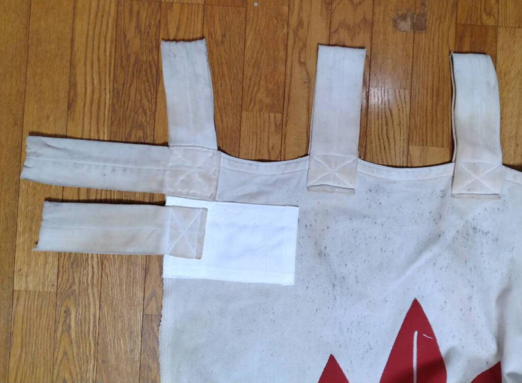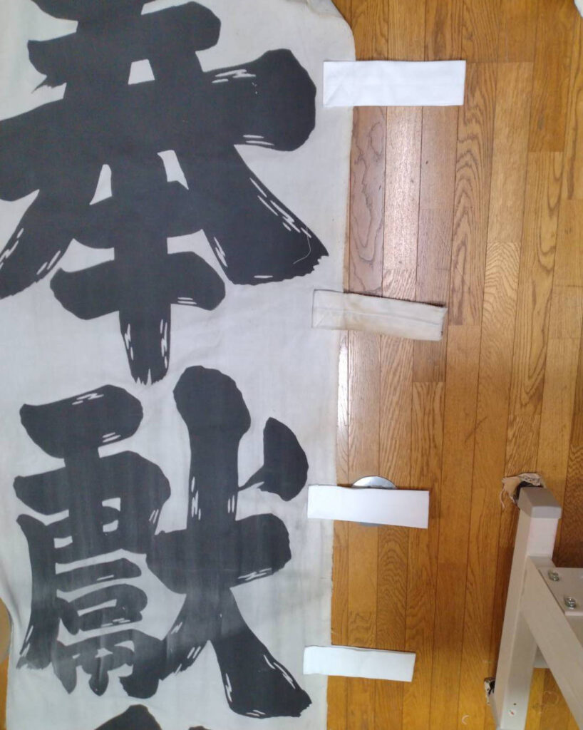 大幟(大のぼり)上部の破れを当て布修理、チチ布の交換をしました。
