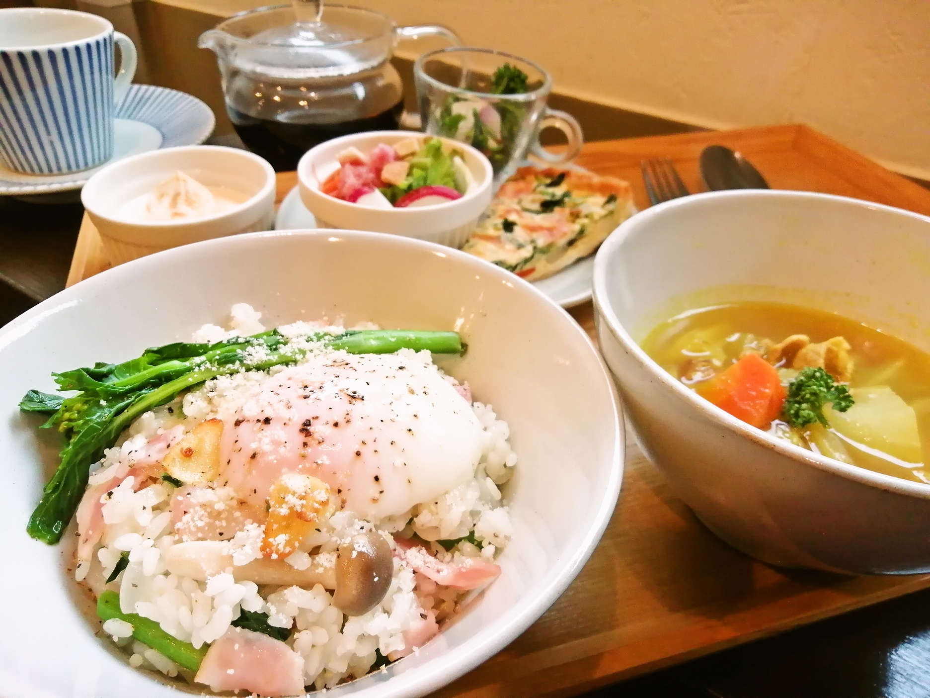 ▶ 4月後半限定!菜の花の和風カルボまぜごはん 温たまのせ