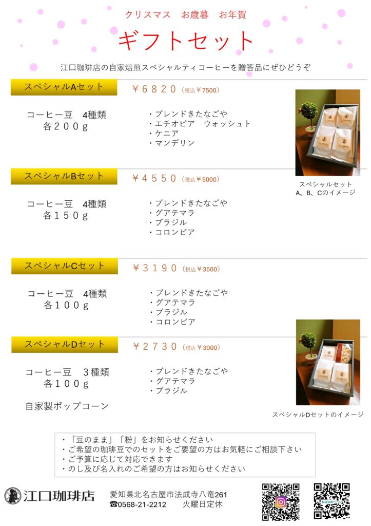 キスポ > 各種小売飲食 > 江口珈琲店 > ギフトボックスのお知らせ
