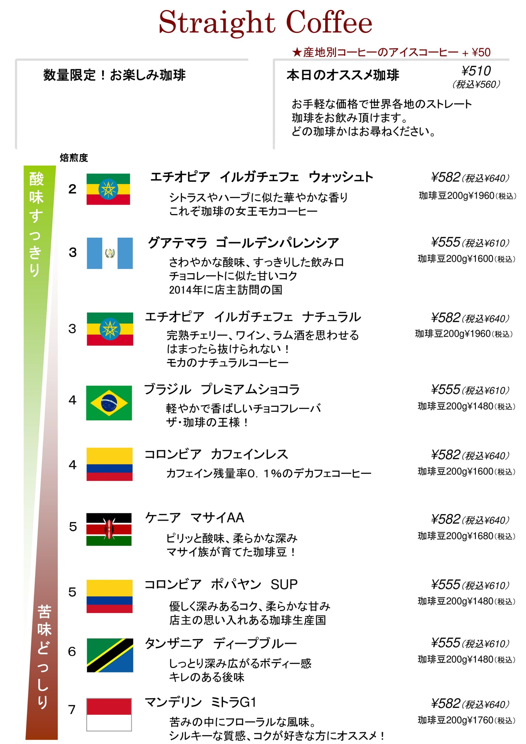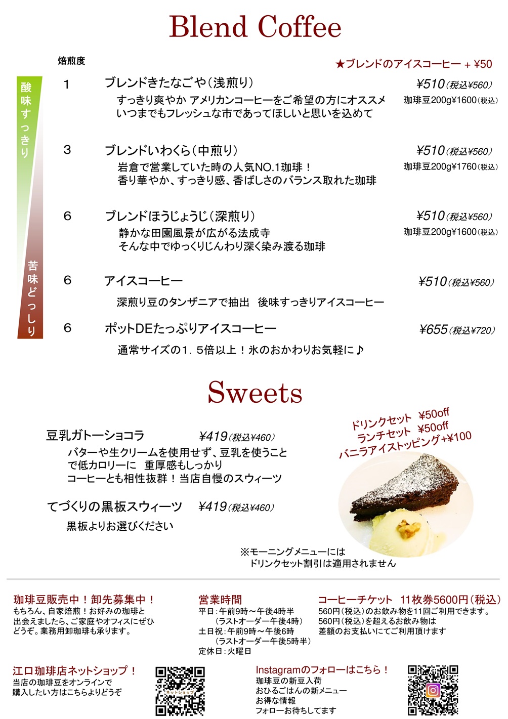 キスポ > 各種小売飲食 > 江口珈琲店 > メニュー1