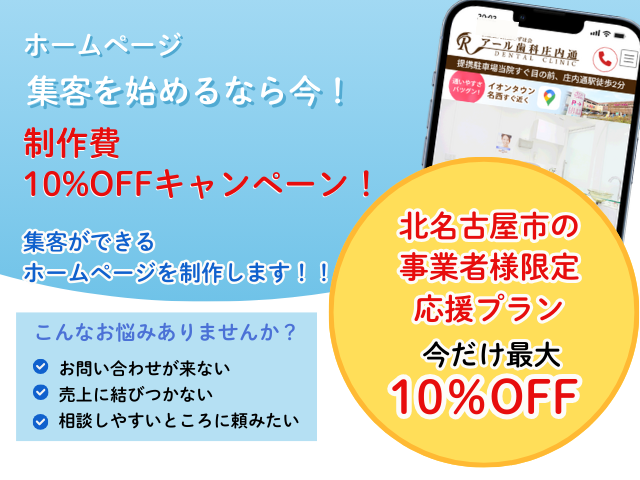 ▶ 【北名古屋市限定】地元事業者様応援!ホームページ制作・リニューアル費用 10%OFF